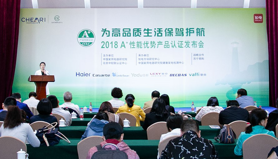 2018年5月22日,由中國家用電器研究院與北京中輕聯認證中心共同主辦的“為高品質生活保駕護航”暨2018年A+性能優勢產品認證發布會在北京召開。