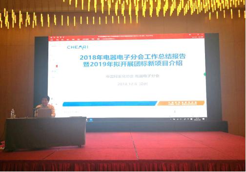 最后,中國標(biāo)準(zhǔn)化協(xié)會電器電子分會祁冰秘書長對2018年電器電子分會的工作進(jìn)行總結(jié)匯報(bào),并針對2019年擬開展團(tuán)標(biāo)新項(xiàng)目進(jìn)行重點(diǎn)介紹。