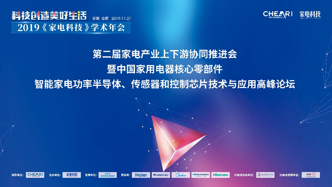 第二屆家電產業上下游協同推進會暨中國家用電器核心零部件—智能家電功率半導體、傳感器和控制芯片技術與應用高峰論壇作為2019《家電科技》學術年會分會場之一,于11月21日下午在安徽合肥召開。
