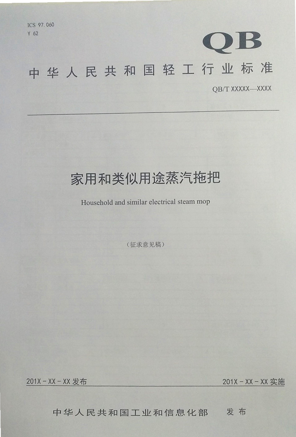 圖3 行業標準《家用和類似用途蒸汽拖把》(征求意見稿)